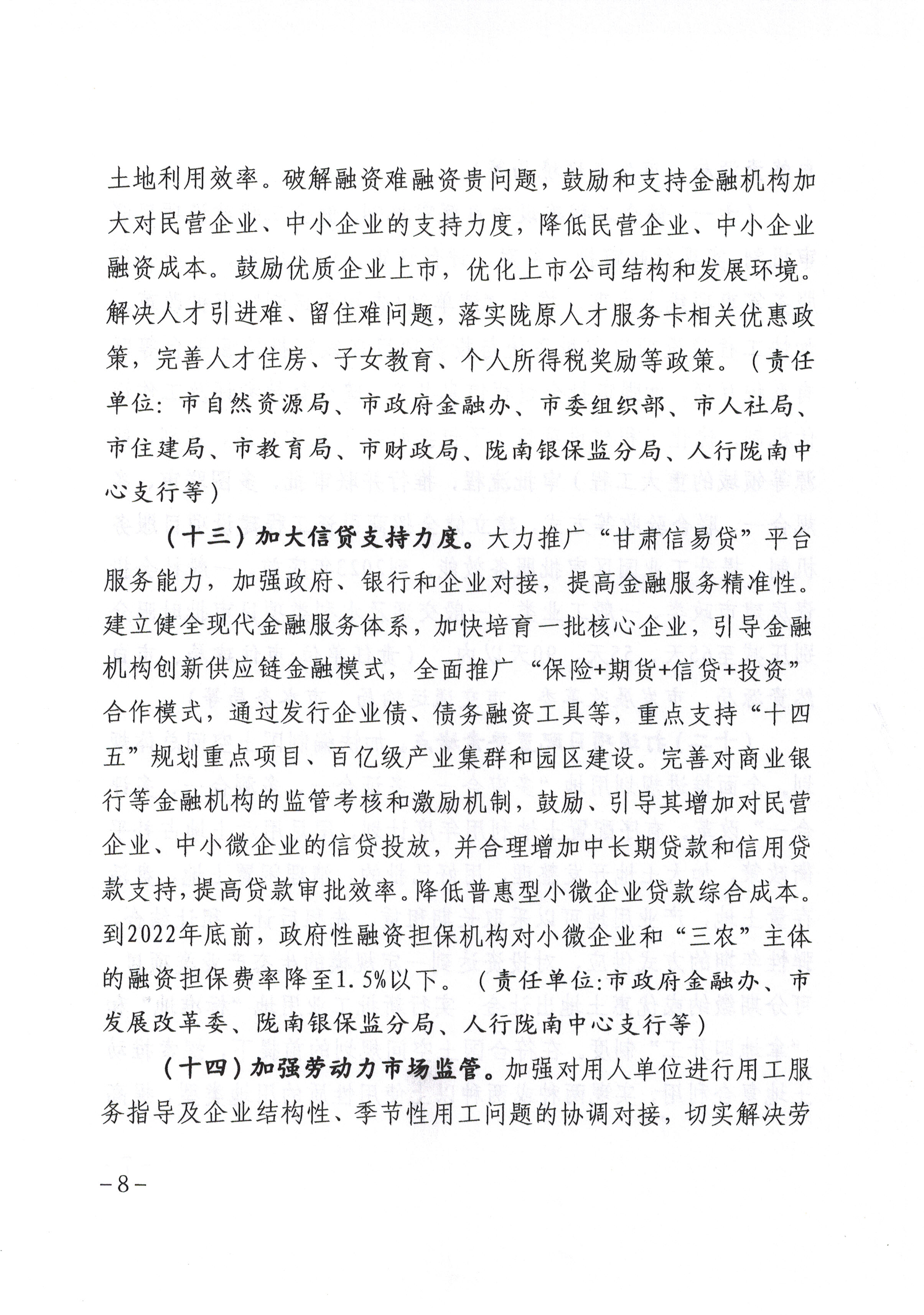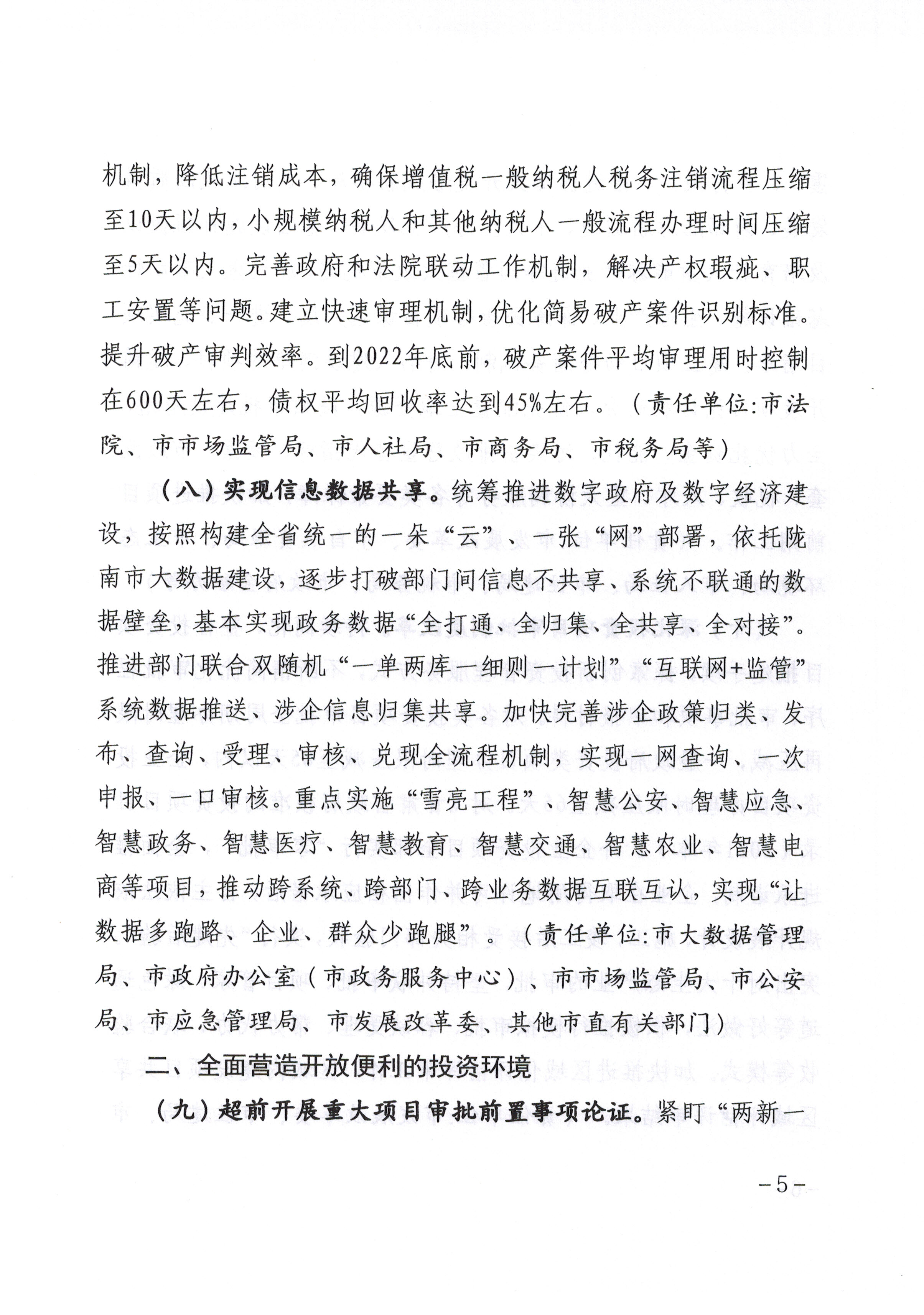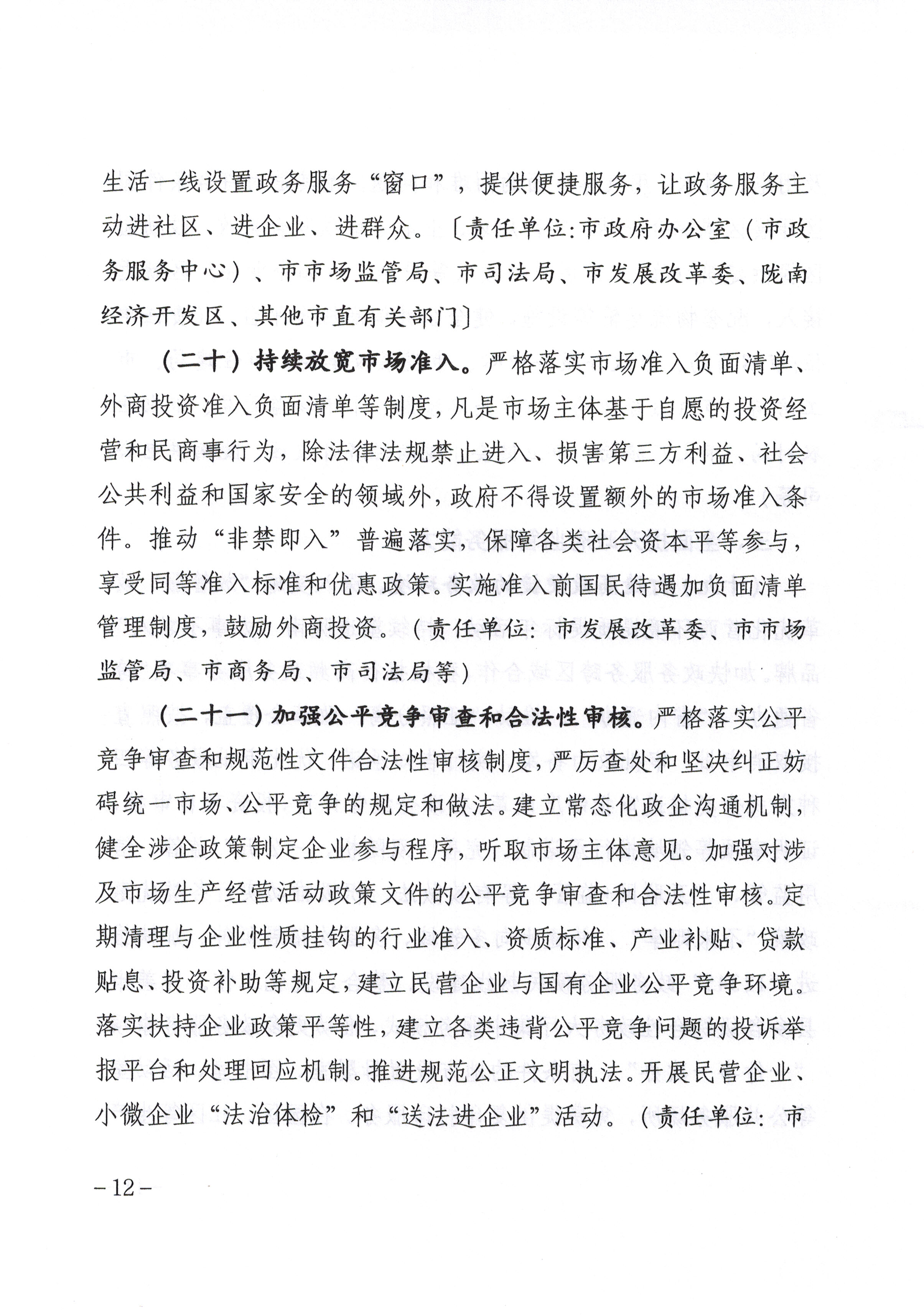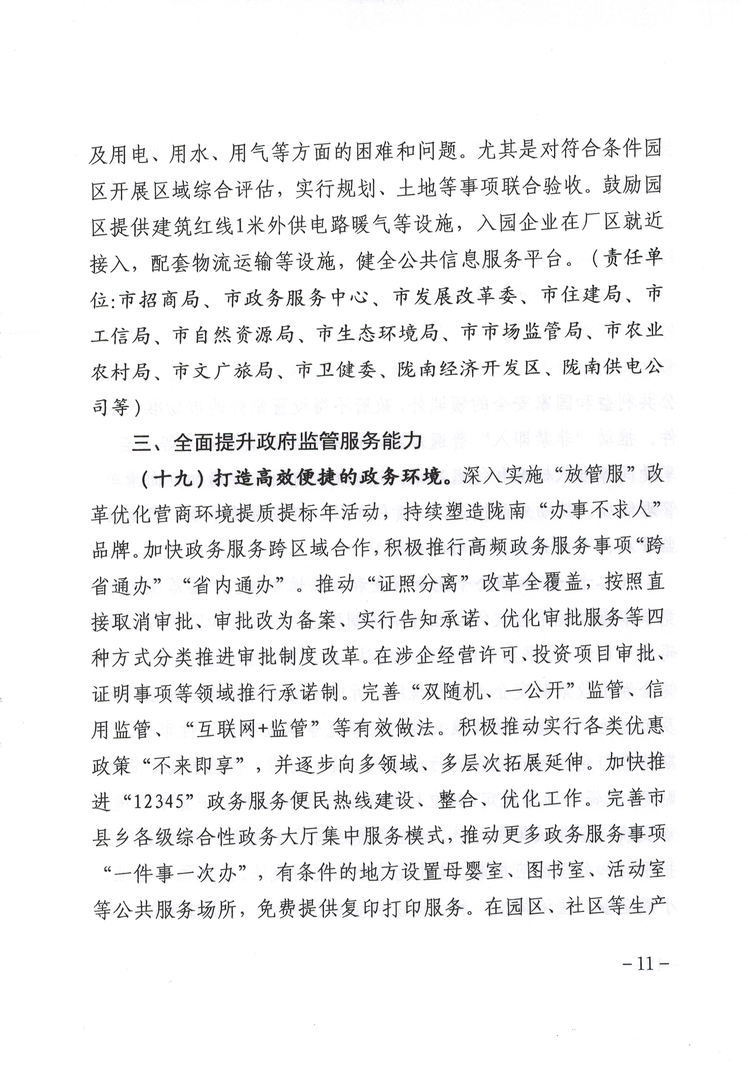 中共陇南市委办公室陇南市人民政府办公室印发《关于落实全面优化营商环境的若干措施》的通知