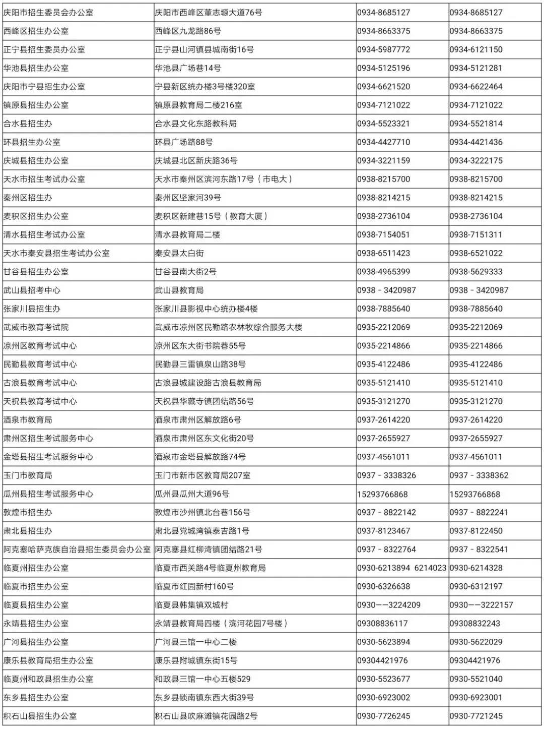 甘肃各市州县区2020年高考咨询举报电话公布
