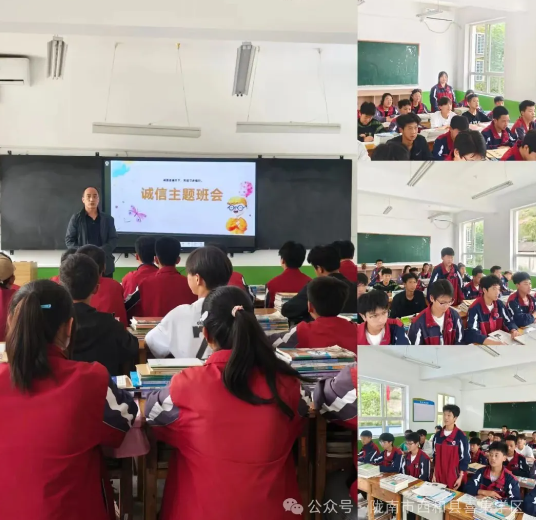 二、开展主题班会。各班级以“诚信是什么”为核心,开展看生动的主题班会。课堂上老师通过讲关于诚信的故事和情景模拟等形式,帮助学生理解诚信的内涵--从按时完成作业,不抄袭他人答案,到答应同学的小事认真做到,都是诚信的体现。