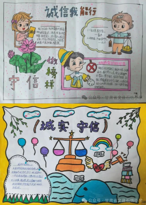 诚实守信主题手抄报展示校园的宣传栏里,一张张色彩鲜艳、创意十足的诚信手抄报引人注目。同学们用画笔描绘诚信场景,用文字书写诚信感悟,将对诚信的理解与思考融入笔尖,营造出“人人讲诚信,处处守诚信”的浓厚校园文化氛围。