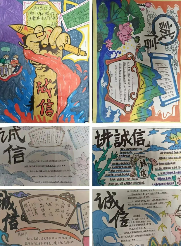 高年级学生在老师的指导下,开展了诚信“手抄报”创作活动。学生们以“诚信”为主题,精心设计手抄报,内容包含了诚信名言、小故事、践行方法等。通过创作手抄报,学生们不仅加深了对诚信知识的理解,还锻炼了自己的动手能力和创造力,进一步扩大了诚信教育的影响力。