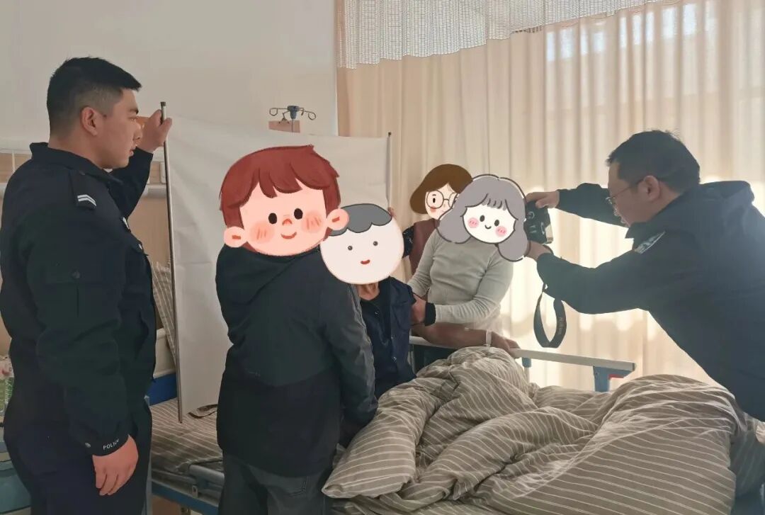 当天下午,民警辅警准时抵达医院病房。刚一进门,就看到该群众的丈夫躺在床上,因身体原因无法自主坐起,眼睛也难以直视前方,这给人像信息采集带来了不小的挑战。“大哥,别紧张,我们慢慢来,一定帮你拍好照片。”民警轻声安慰,随后小心翼翼地调试床铺高度,尽量让群众保持舒适的姿势。在家属的默契配合下,民警辅警一边耐心引导调整头部角度,一边不断鼓励:“再坚持一下,马上就好!”