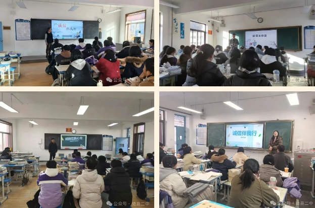 班会现场,班主任们通过生动案例讲解、诚信故事分享、互动讨论等多样形式,向学生阐释诚信的内涵与意义。从古代“曾子杀猪”“季札挂剑”的传统美德,到现代社会诚信考试、诚信做人的行为准则,从校园生活中的诚信作业、诚信交往,到未来人生中的诚信立身、诚信成事,层层递进的讲解让学生深刻理解诚信是为人处世的根本。
