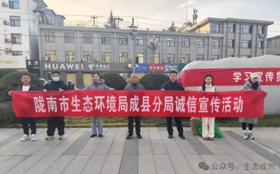 为提升企业与公众的环保诚信意识,营造诚实守信氛围,推进生态环境领域信用体系建设,近日,陇南市生态环境局成县分局组织业务骨干开展了诚信宣传活动。