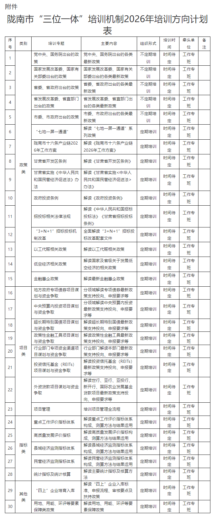 附件:陇南市“三位一体”培训机制2026年培训方向计划表